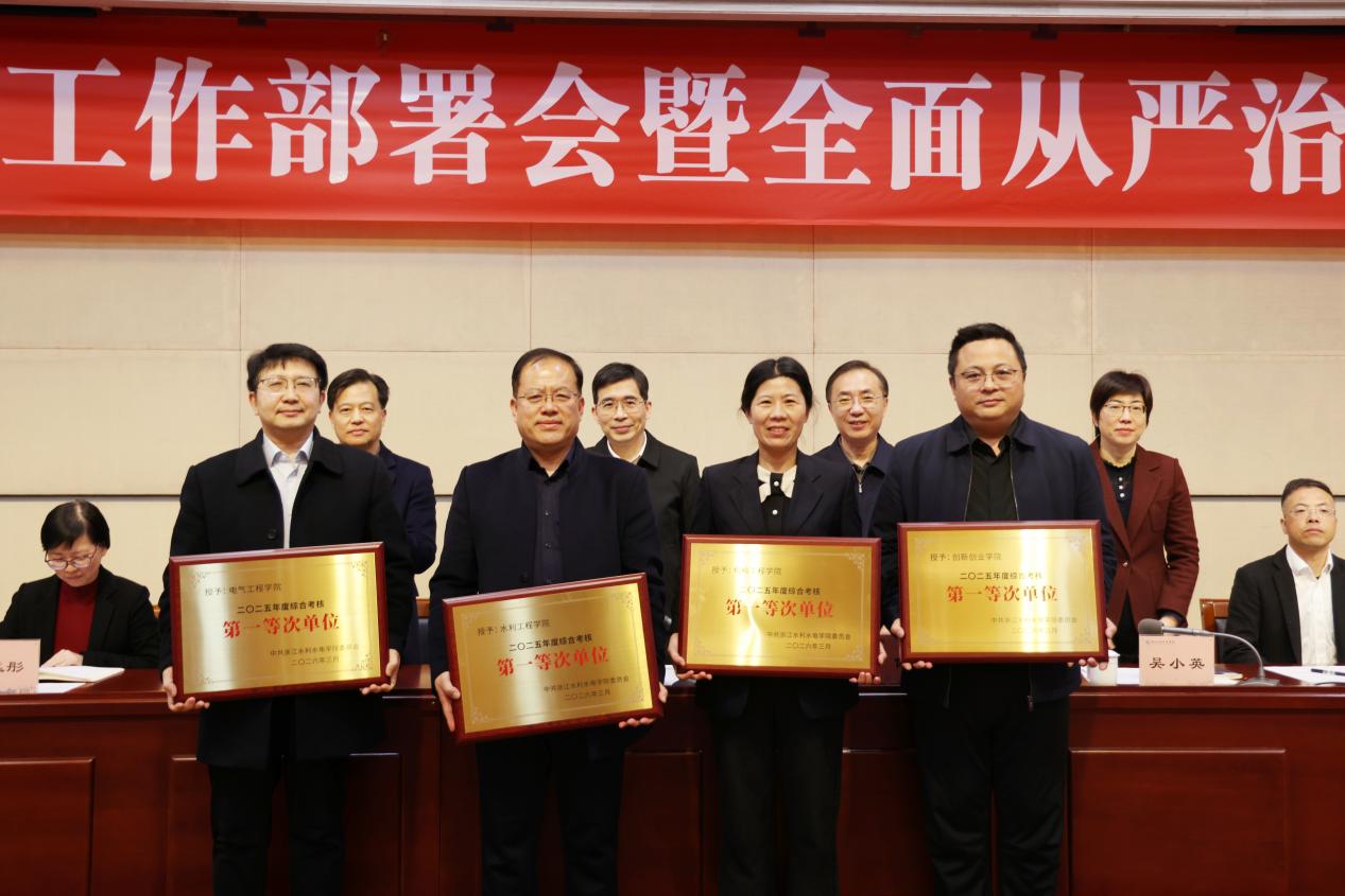 钱天国强调,要深入学习贯彻习近平总书记在二十届中央纪委五次全会上的重要讲话精神,以更高标准、更实举措推进全面从严治党,为学校“十五五”发展开好局起好步提供坚强的政治保证。要全面加强党对学校工作的领导,不断提高党委领导下的校长负责制运行效能和办学治校水平。要扎实开展树立和践行正确政绩观学习教育,把政绩体现在推动学校发展的成效上、体现在师生群众的幸福感满意度上。要全面高质量完成省委巡视整改任务,组织开展对6个二级党组织的校内巡察。要严格落实意识形态工作责任制,加强阵地建设管理,守牢政治安全底线。要深入实施“培根铸魂强基”工程,增强基层党组织政治功能和组织功能。要健全干部“选育管用”全链条机制,完善校内综合考核办法,更好激励干部担当作为。要严格落实党风廉政建设责任制,深化清廉水院建设,持续涵养风清气正政治生态。要认真开展“干部作风建设深化年”活动,大力弘扬“六干”作风,求真务实、真抓实干,推动全年各项决策部署和工作任务落地见效。