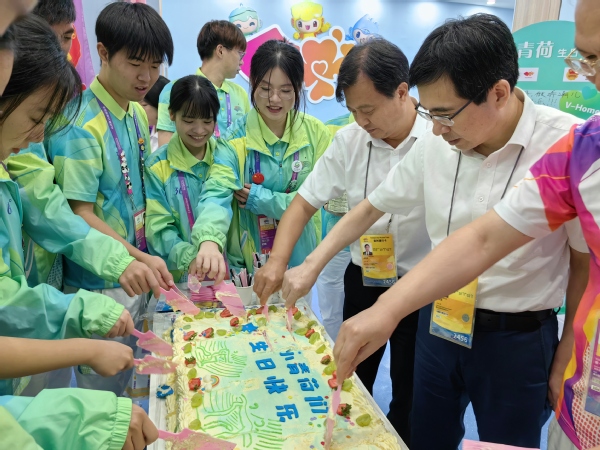 在志愿者换岗休整空间,生日蛋糕、缤纷糖果、青荷花束、物资礼包等把整个空间装扮一新。随着生日祝福歌的唱响,钱天国、陈光亭和“小青荷”们共同切开生日蛋糕,共度了一场别开生面的集体生日会,见证了亚运场馆里这份特别的爱与温暖。钱天国、陈光亭还为场馆运行团队有关负责人和志愿者带队老师送上鲜花,向他们的辛勤付出表示感谢。