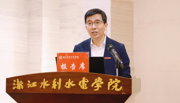 10月27日下午,以“汇聚创新资源,凝聚创新力量,建水特色学科,助力水利高质量发展”为主题的水科学高端论坛暨水科学研究院揭牌仪式在钱塘校区举行。长江设计集团首席科学家、中国工程院院士钮新强,省水利厅党组副书记、副厅长范波芹,校党委书记钱天国,校长陈光亭出席会议。中国工程院院士王浩在线出席会议,向学校建校70周年和水科学研究院成立表示祝贺。揭牌仪式和主旨报告由副校长王建军主持。