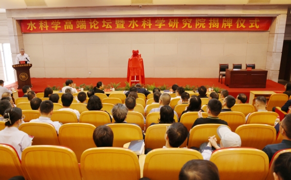 会上,钮新强院士受聘为水科学研究院第一届学术委员会主任委员。陈光亭为学术委员会全体成员颁发聘书。钮新强、范波芹、钱天国、陈光亭一起为水科学研究院揭牌。
