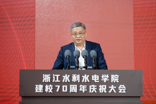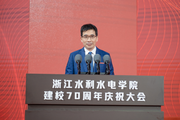 钱天国在主持时指出,多年来,在省委、省政府的坚强领导和省水利厅、教育厅等上级部门的领导指导和关心支持下,学校深入贯彻“贺信精神”,牢记习近平总书记殷殷嘱托,坚持一张蓝图绘到底,办学规模、办学层次、办学水平不断提升,学校事业“高质量、有特色”发展取得了阶段性成果。他表示,学校将以建校70周年为新起点,深入学习贯彻习近平新时代中国特色社会主义思想,坚持以“贺信精神”为根本遵循,坚守水利水电办学初心,锚定高水平应用型大学建设目标,深入实施人才强校战略,凝聚水院共同体强大合力,落实立德树人根本任务,持续推动学校事业高质量有特色发展,为深入实施“八八战略”,建设高等教育强省,奋力谱写中国式现代化浙江新篇章展现水院担当、作出水院贡献。