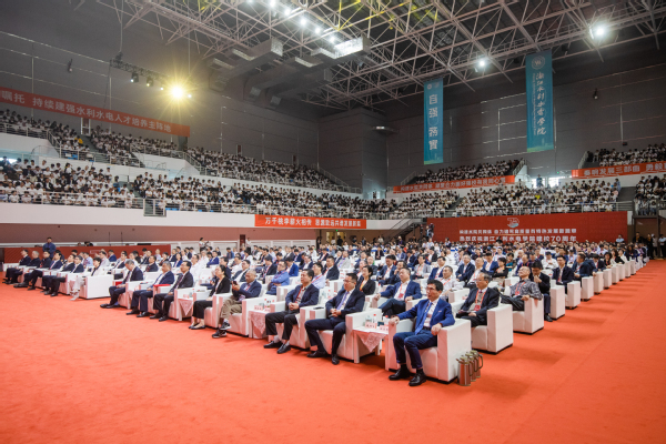 水利部人事司副司长王静,中国工程院院士、长江设计集团首席科学家钮新强,省水利厅党组书记、厅长李锐,省委教育工委委员、省教育厅副厅长陈峰,湖州市人民政府副市长夏坚定,省水利厅党组副书记、副厅长范波芹,省人力资源和社会保障厅党组成员、副厅长葛平安,省社科联副主席陈先春;中国水利教育协会会长张明俊,水利部交通运输部国家能源局南京水利科学研究院党委书记段虹,国际小水电中心党委书记、主任徐锦才,中国水利水电出版传媒集团有限公司总经理营幼峰,水利部产品质量标准研究所党委书记、所长方勇;湖州市南浔区委书记温建飞、区长程佳,杭州市钱塘区副区长胡国伟;华北水利水电大学、南昌工程学院、徐州工程学院、新疆理工学院、中国美术学院、浙江工业大学、浙江师范大学、杭州电子科技大学、西湖大学、衢州学院、温州理工学院等59所兄弟高校的领导出席庆祝大会。浙江水利水电学院党委书记钱天国主持大会。