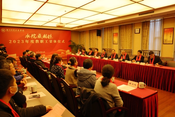 1月19日下午,学校2023年度“水院感谢您”教职工荣休仪式在钱塘校区举行。校党委书记钱天国、校长万健出席。副校长王建军主持仪式。退休教职工所在部门的领导及同事代表,办公室、组织部(统战部)、宣传部、人事处(教师工作部)、工会(离退休办公室)等部门负责人参加。