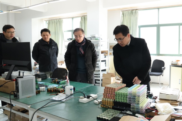 在柔性电力技术研究与创新实验室,钱天国、万健查看了科研设备,认真听取了在研项目的推进情况,了解了实验室的运行情况,并对实验室安全提出要求。