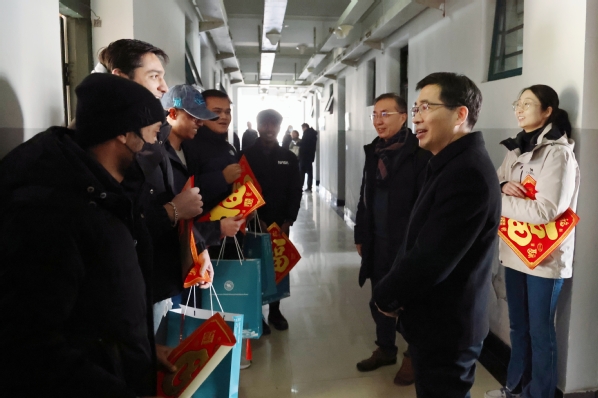 在学生宿舍,钱天国、万健与留学生们亲切互动,为他们送上代表美好的“福”字和慰问物品,同时要求相关部门做好留校留学生的后勤保障工作,及时为他们解决在日常生活中遇到的困难。