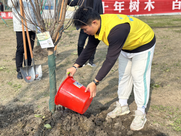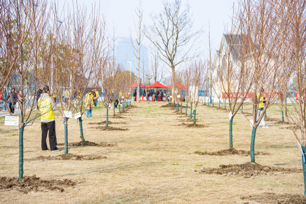 此次活动是南浔区绿化委员会在我校组织开展的义务植树活动。当日上午,校领导、区领导、校青协志愿者近150人参加,种植朴树、李树、桃树、樱花、水杉等苗木200余株。在大家的共同努力下,一棵棵树木迎风挺立,展露蓬勃生机。